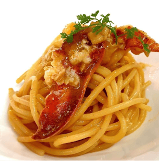 Spaghettone monograno alla bisque e Astice con datterino giallo
