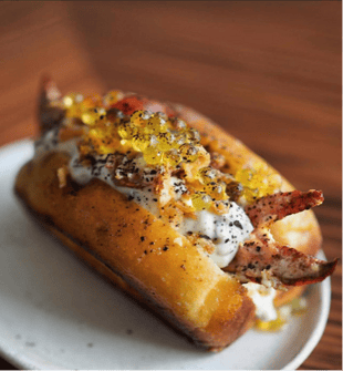Lobster Roll con carne di Astice salsa tartara e caviale di Wasabi