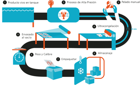 Questa particolare tecnica permette di pulire perfettamente gli astici lasciando la loro polpa cruda intatta a differenza di tutti gli altri processi industriali che tendono a cuocere il prodotto per poterlo separare dal guscio.
